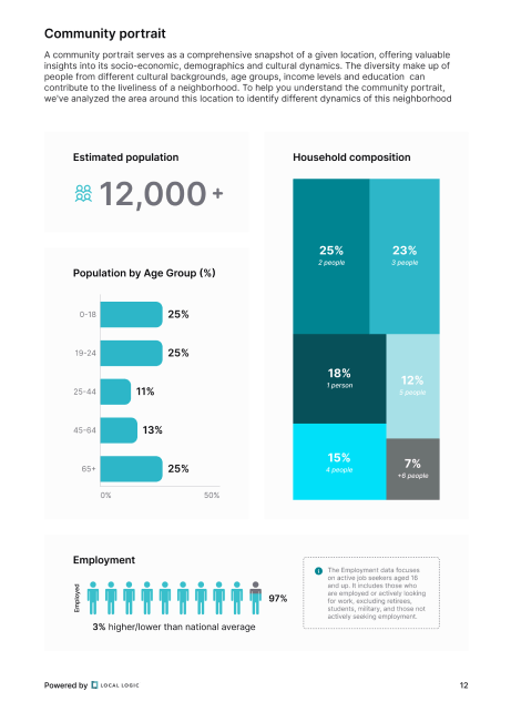Powered by over 85 billion unique data points, IO Reports provides comprehensive location insights for more than 250 million individual addresses across the U.S. and Canada. Using granular proprietary data and publicly available information, Local Logic Reports equip agents with a deeper understanding of any location, enabling them to help homeowners find the right home by casting a broader net when they search for properties.