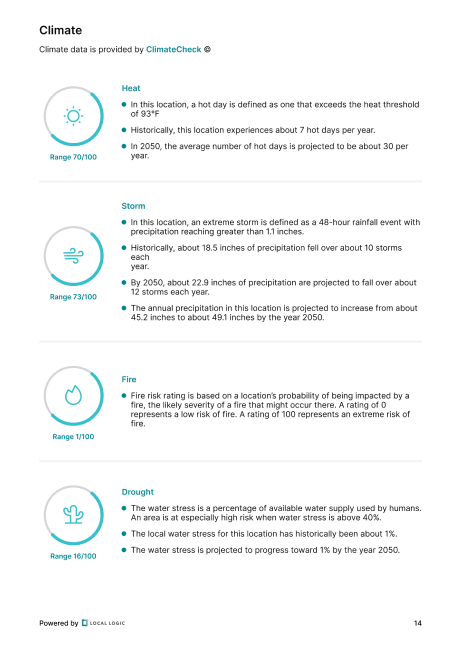 IO Reports is packed with unique top-tier insights to help you understand the area surrounding a property in depth. Among the features included in this report are neighborhood profiles, granular demographic data, climate risk assessments, and property insights.